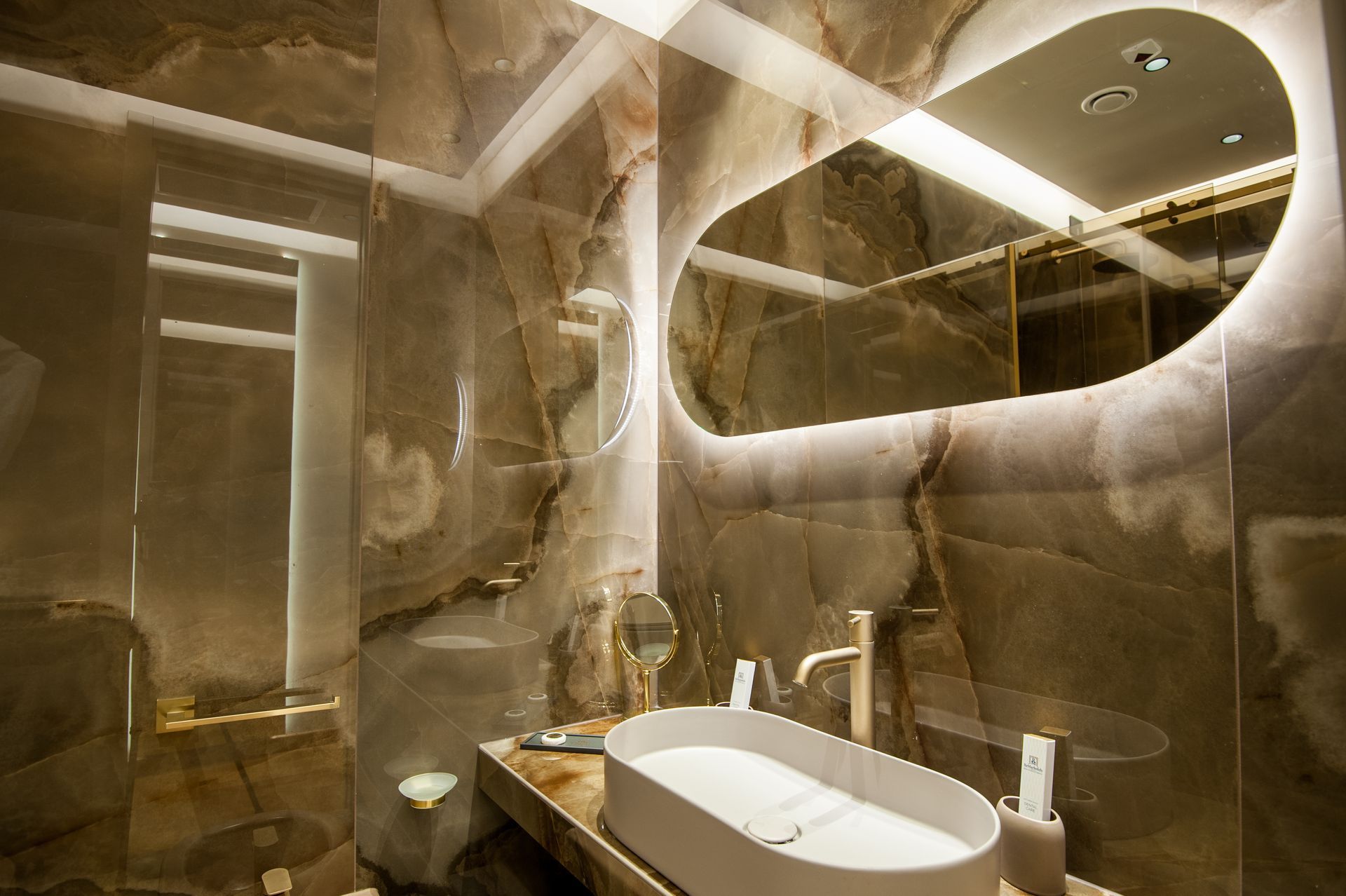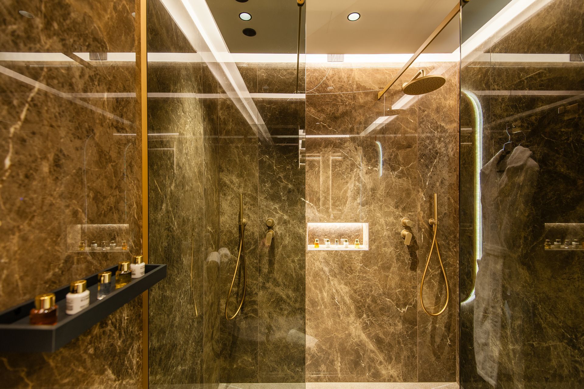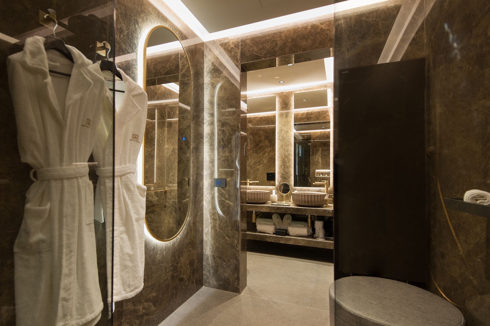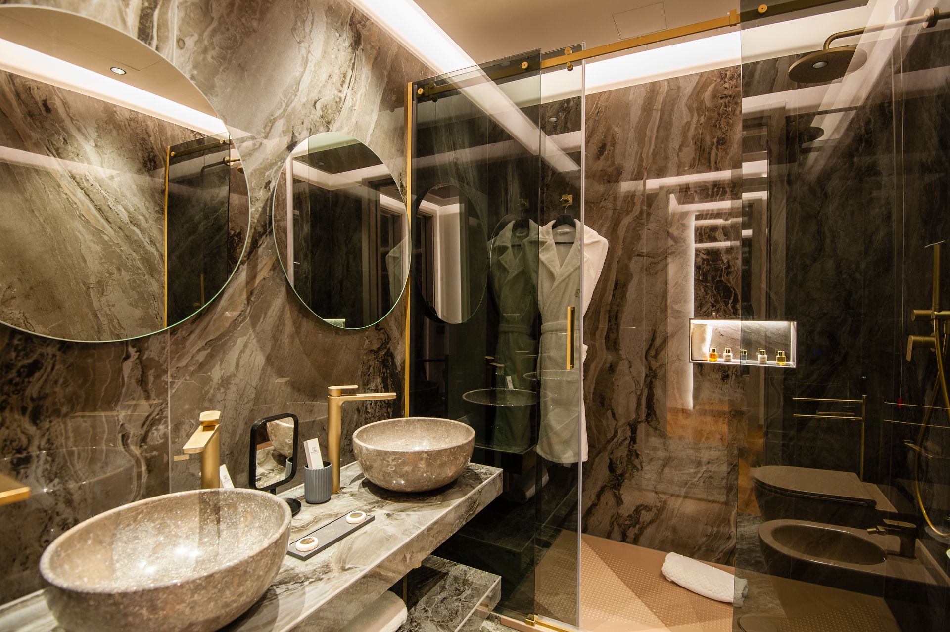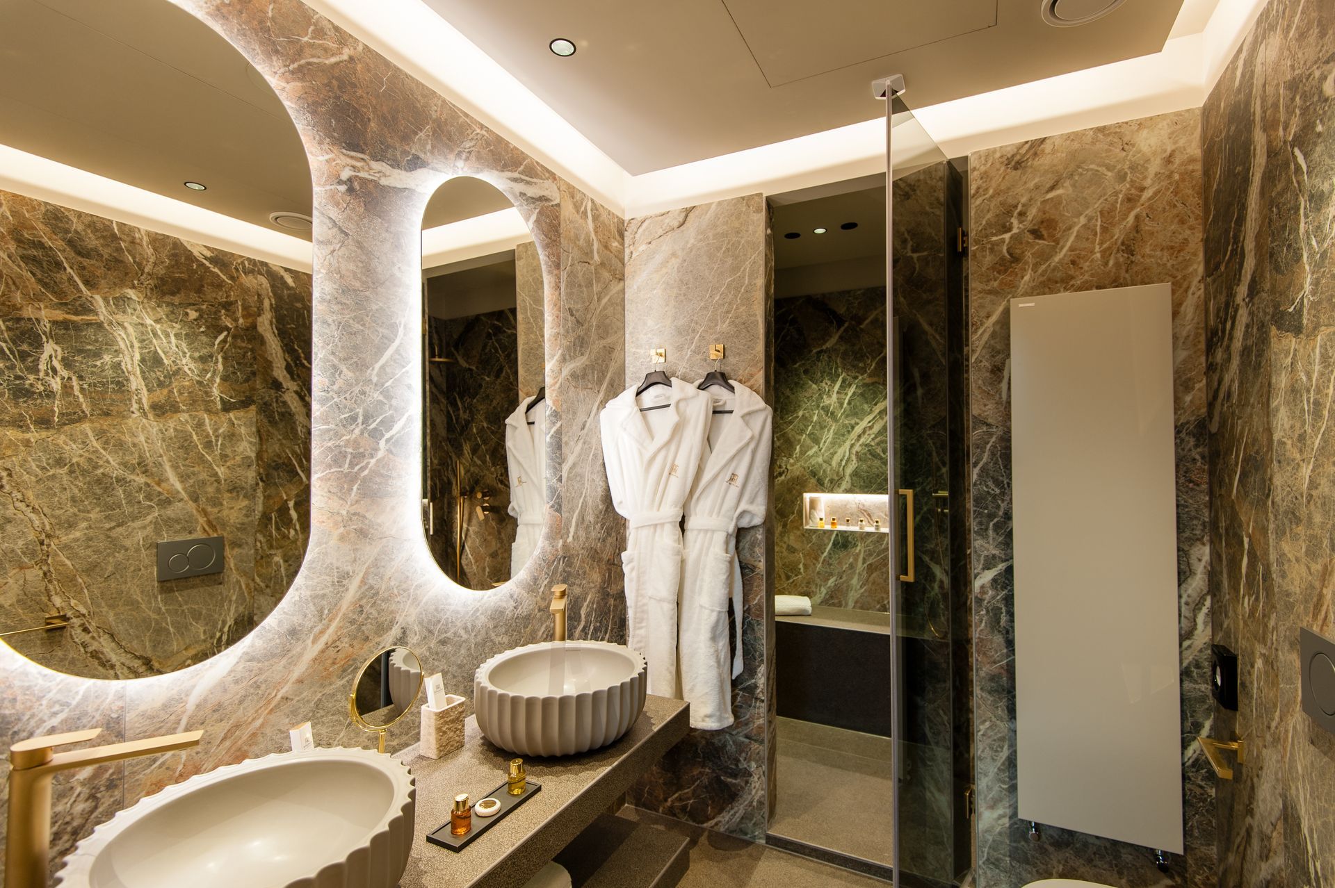 Die Suiten befinden sich im 4. und 5. Stockwerk und sind elegant und geräumig, mit hochwertigen Möbeln und modernstem Komfort ausgestattet. Die eigene Rezeption auf derselben Etage garantiert einen maßgeschneiderten Service für jeden Bedarf.